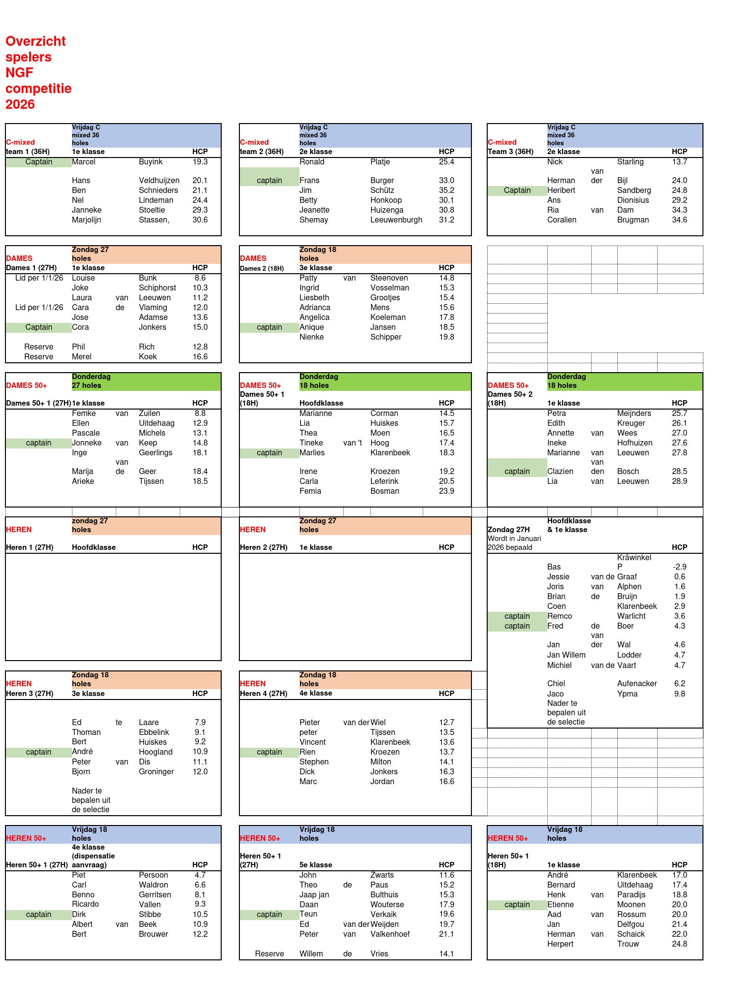 Klik hier voor de competitieteams 2026 Klik hier voor de competitiedata voor 2026 Klik hier voor de NGF reglementen en formulieren Klik hier voor het competitiebeleidsplan 2025 en verder
