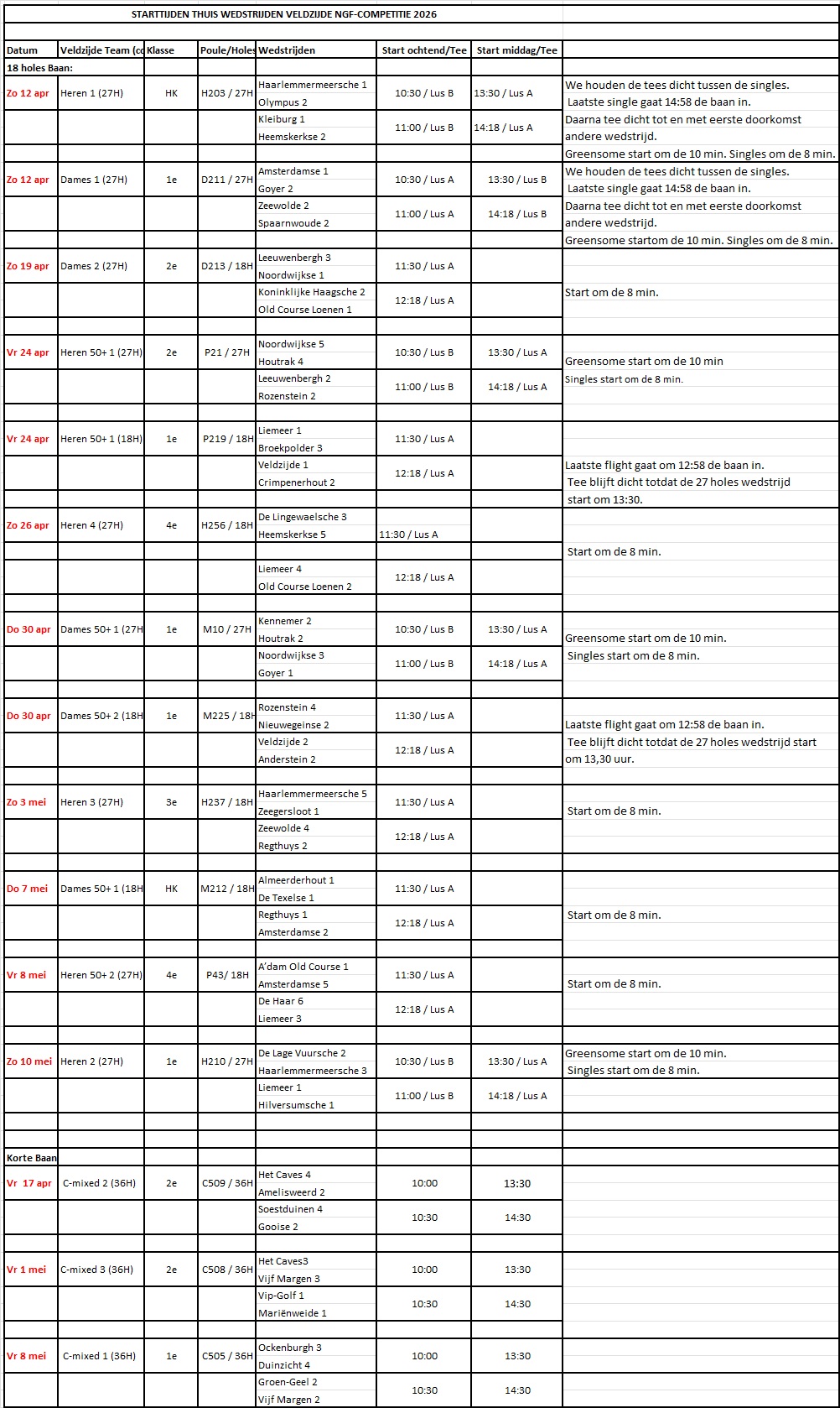 Speeldata & tijden